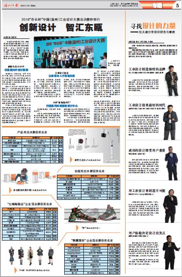 近年来,温州市委市政府坚持“创新、协调、绿色、开放、共享”发展理念,努力优化发展环境,不断提升工业设计发展水平。今年以来,先后出台了新动能政策、工业新政、人才四十条等政策措施,对工业设计项目和设计人才加以扶持;同时,在世界温州人家园里重点打造温州时尚智造设计中心,吸引国内外一流的创新设计团队入驻。