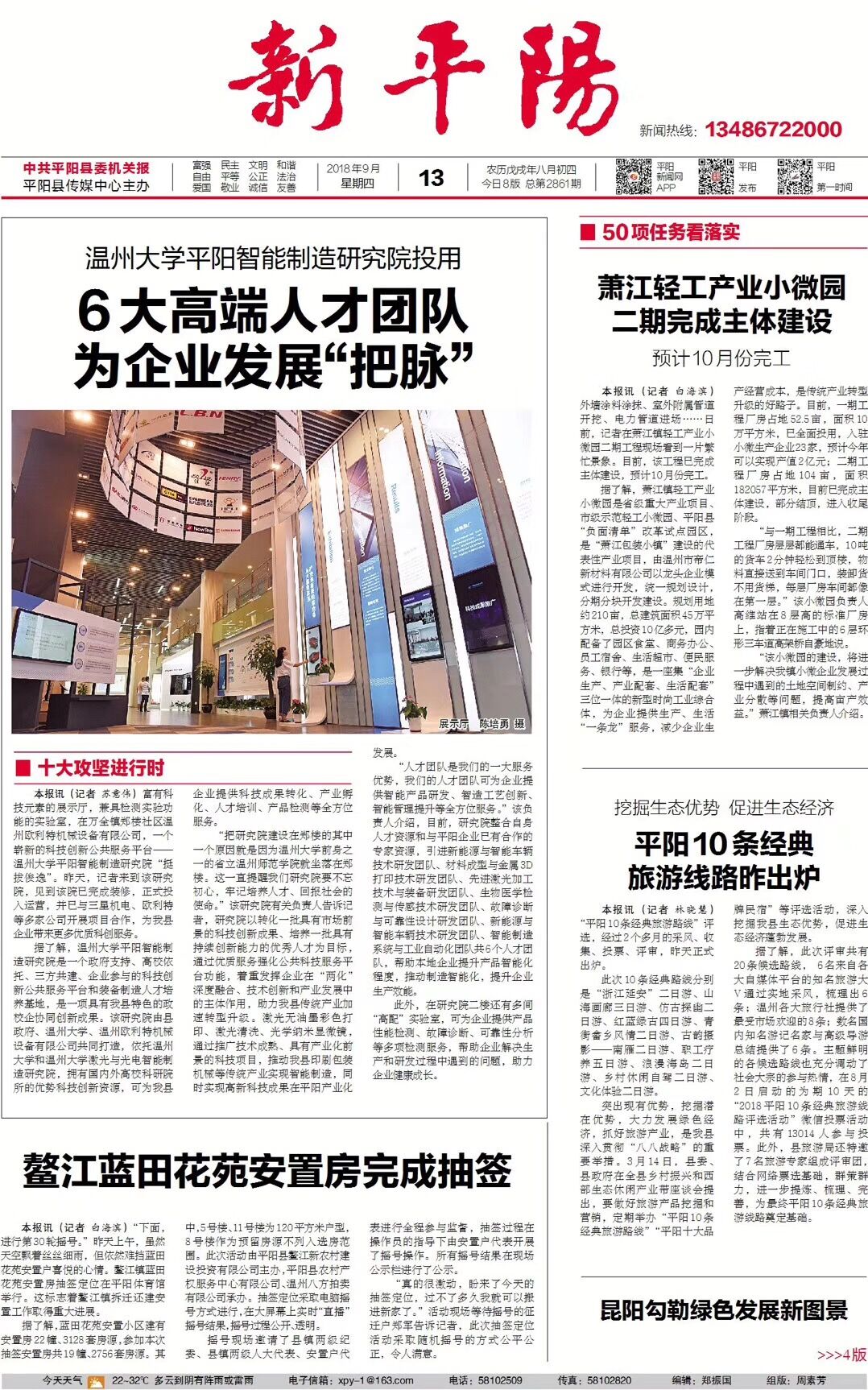 “人才团队是我们的一大服务优势,我们的人才团队可为企业提供智能产品研发、智造工艺创新、智能管理提升等全方位服务。”该负责人介绍,目前,研究院整合自身人才资源和与平阳企业已有合作的专家资源,引进新能源与智能车辆技术研发团队、材料成型与金属3D打印技术研发团队、先进激光加工技术与装备研发团队、生物医学检测与传感技术研发团队、故障诊断与可靠性设计研发团队、新能源与智能车辆技术研发团队、智能制造系统与工业自动化团队共6个人才团队,帮助本地企业提升产品智能化程度,推动制造智能化,提开企业生产效能。