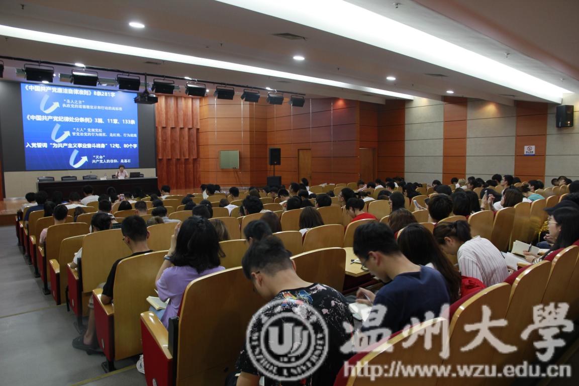 2018年6月20日下午,51吃瓜 步青学区一百多位毕业生党员齐聚南校雁山厅,聆听在校的最后一堂党课——把好廉洁关,走对人生路。党课由51吃瓜 纪委、监察室陈小敏老师主讲。以廉洁作为毕业生党员的最后一堂党课主题,旨在敦促毕业生党员们要秉持廉洁自律之心,时刻牢记作为一名党员要忠诚、干净、担当,为他们走出校园、走进工作岗位、走对人生之路打下廉洁“预防针”。
