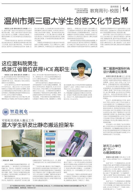 “当时的比赛主题是关于医疗器械的。我们老师的父亲曾经身体不好住院治疗,结果发现手术后患者及重症患者由于身体原因往往不能活动,而护工在搬运过程中也非常辛苦,而且容易产生颠簸。”屠佳炜回忆起当年参加省机械设计竞赛时的情况,通过讨论,队员们决定填补市场空白,研发可轻松完成手术病人搬运的担架车。