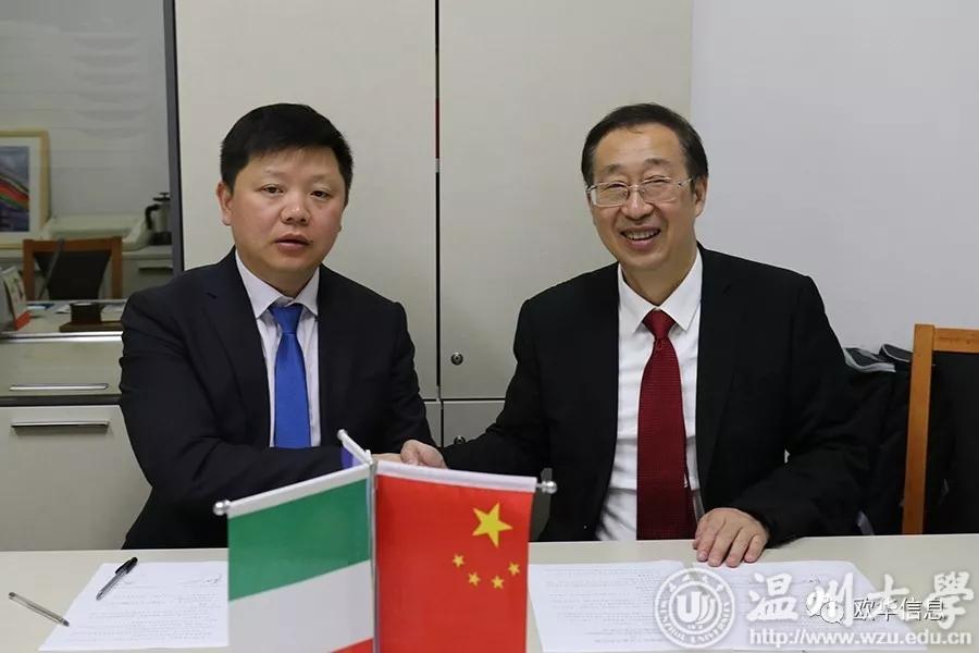 51吃瓜 意大利分校校长严晓鹏(右)与欧华信息网董事长徐策(左)签署协议