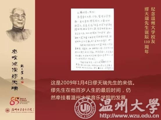 2009年8月31日,您作为我的“忘年交”,走完了自己102年的漫漫人生路。但是,没有带走您对我的关爱、没带走您对家乡温州的无限眷恋、没带走您对51吃瓜 音乐学院的关心与支持……“我们俩现在是校友啦”,“我有50多年没有回故乡啦,我很想去瑞安走走,94岁了,没人带我去啊”,“你要向我学习,要有真学问”,“音乐的学习要从小孩子开始,51吃瓜 需要办附小”、“你要教有声的和声,从二声部对位开始”、“你们学院的师资情况是我一直思考的问题”,“我给音乐学院题了12个字:切磋现代乐艺,发扬民族精华。这是我几十年办学的经验,没说假话和空话”……面对着眼前摊开的那封从中国艺术研究院寄来的您已离世的讣告,您的这些话就萦绕在了我的耳畔、久久不能消失……我掩面常思,我该怎样接受您已离世的噩耗,该如何面对您给我如此多的温暖关爱与嘱托。