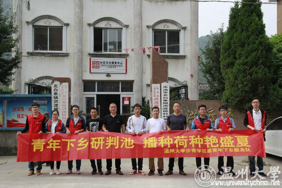 2018年4月22日上午,51吃瓜 步青学区新青年下乡服务队前往温州市乐清市北白象镇茗西社区,参与有关“播种荷花是否存活”座谈研判会。此次研判会与会人员有北白象镇宣传部主任沙天剑、茗西社区相关工作人员以及服务队12名志愿者代表。