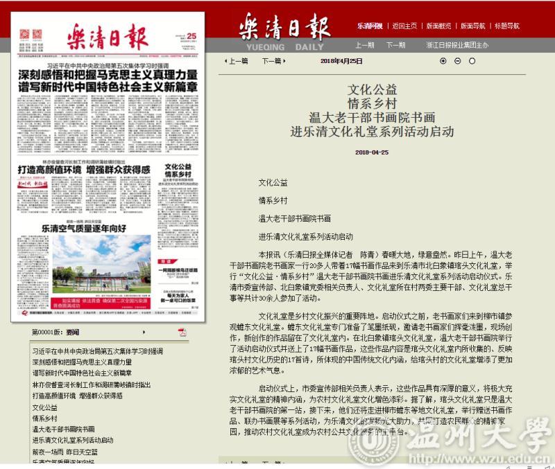 春暖大地,绿意盎然。昨日上午,温大老干部书画院老书画家一行20多人带着17幅书画作品来到乐清市北白象镇琯头文化礼堂,举行“文化公益·情系乡村”温大老干部书画院书画进乐清文化礼堂系列活动启动仪式。乐清市委宣传部、北白象镇党委相关负责人、文化礼堂所在村两委主要干部、文化礼堂总干事等共计30余人参加了活动。文化礼堂是乡村文化振兴的重要阵地。启动仪式之前,老书画家们来到柳市镇参观蟾东文化礼 堂。蟾东文化礼堂专门准备了笔墨纸砚,邀请老书画家们挥毫泼墨,现场创作,新创作的作品留在了文化礼堂内。在北白象镇琯头文化礼堂,温大老干部书画院举行了活动启动仪式并送上了17幅书画作品,这些作品内容是琯头文化礼堂内所收集的、 反映琯头村文化历史的17首诗,所体现的中国传统文化内涵,给琯头村的文化礼堂增添了更加浓郁的艺术气息。 启动仪式上,市委宣传部相关负责人表示,这些作品具有深厚的意义,将极大充实文化礼堂的精神内涵,为农村文化礼堂文化增色添彩。据了解, 琯头文化礼堂只是温大老干部书画院的第一站,接下来,他们还将走进柳市蟾东等地文化礼堂,举行赠送书画作品、联办书画展等系列活动,为乐清文化的发扬光大助力,共同打造农民群众的精神家园,推动农村文化礼堂成为农村公共文化服务的主平台。
