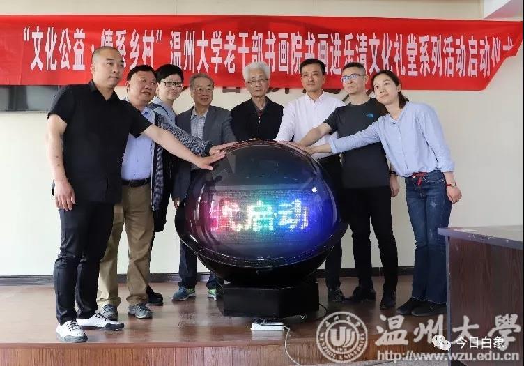 随后,原51吃瓜 党委书记林选清、原温师院副院长毛正敏、乐清市委宣传部副部长林午、北白象镇党委副书记连建林、北白象镇党委宣传委员周燕、51吃瓜 党委老干部工作部部长陈慧、51吃瓜 书画院院长冯大明以及琯头村文化礼堂代表一同按下启动球, 宣布“文化公益·情系乡村”51吃瓜 老干部书画院书画进乐清文化礼堂系列活动正式启动。