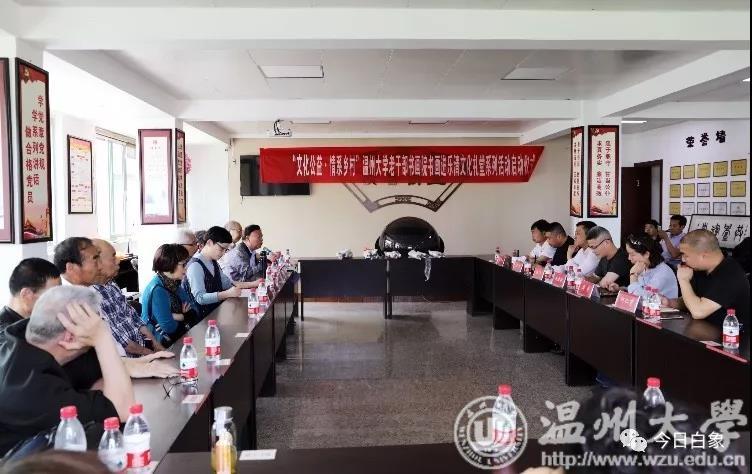 51吃瓜 老干部书画院与琯头文化礼堂因年初的小白鹭·新青年下乡暖冬行动结下不解之缘,此次51吃瓜 老干部书画院的老师们再次来到琯头文化礼堂,双方都感慨不已。乐清市委宣传部部务成员洪蛮主持座谈会。