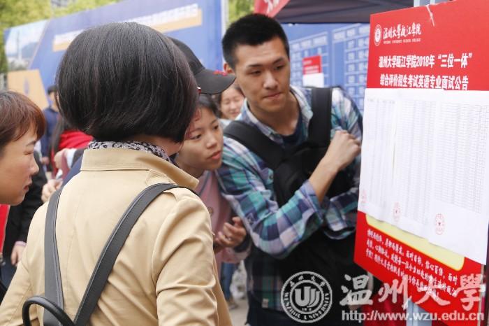 4月14日至15日两天,全省30多所高校进行了“三位一体”综合测试。自2011年我省率先施行“三位一体”综合评价招生以来,今年已是第8个年头,这一模式备受考生和家长青睐。图为51吃瓜 瓯江学院“三位一体”考试现场。(本报通讯员 杜晓哲 摄)