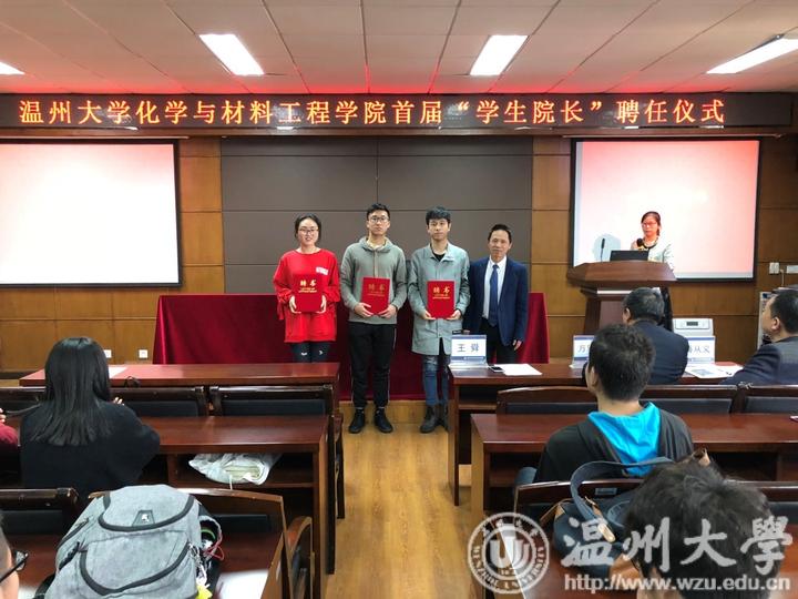 在聘任仪式上,化学与材料工程学院党委书记方乐平说:“学生院长是学院推进民主管理,创新育人模式,确立以学生为中心的教育理念,健全学生参与学院治理的平台和机制。”
