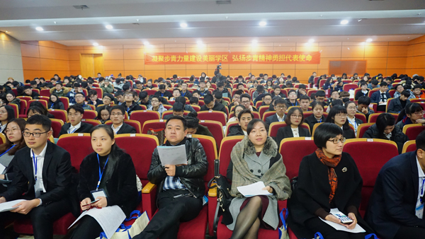聚焦,解决学生最关心的问题。 解决同学最关心、最直接、最现实的利益问题,这是我们今年工作的重心和决心,姜海燕书记在大会致辞中掷地有声。打开今年的大会会议材料,今年由各个楼栋提交的十大提案让人眼前一亮。在这十大提案的现场汇报过程中,不时引起下面代表的纷纷议论和点赞,因为这十个提案就是学生目前最关心的问题和难题。而在全场代表现场微信投票评选优秀提案时,“改善学区电动车充电环境”、“整改学区人行道路面”和“为学生提供硬币兑换服务”,这三个提案得票率最高,它们的最大共同点就是切实击中了同学们的“痛点”,是真正关系学区每一位同学切身利益的“民生难题”。 鼓劲,共建宜学宜居的美丽步青。 建设一个宜学宜居的美丽步青,这种信念和信心,正如同姜海燕书记在和楼栋学生代表们合影时脸上的笑容一样,自信、从容、美丽。通过几年的建设,学区的硬件环境、文化氛围和育人工作等方面取得了长足的进步和发展,这种进步更多来自学生的共同参与和联手贡献。楼栋学生代表大会给学生代表提供了一个施展才华的广阔空间,和贡献力量的青春舞台,在这个舞台上,代表们肩负着学区的重任和全区四千七百余名同学的期望,大步向前!