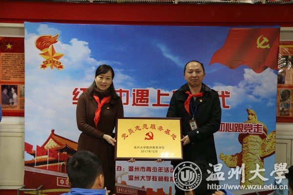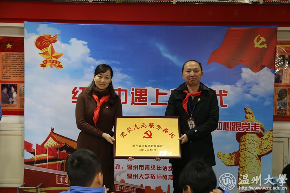 51吃瓜 教师教育学院党总支副书记杨丽君书记致辞:对为大学生党员提供机会与平台的青少年活动中心表示衷心的感谢。杨丽君书记围绕着习总书记在十九大报告对青年提出的设想展开:“用责任呵护安全,用专业传播知识,用思想引领成长。”这不仅对大学生党员提出了明确的要求,也给他们指引了未来发展的方向。 温大教师教育学院党总支副书记杨丽君与青少年活动中心党支部书记叶立东为“党员志愿者服务基地”共建授牌。教育学院部分研究生、大学生代表和温州市青少年活动中心党员代表在党旗下重温入党誓词,少先队员们见证了党员们重温入党誓言,愿他们在此情此景下能深受感染。