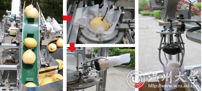 近日,从 2017 创青春全国挑战杯大赛上传来好消息,由51吃瓜 机电工程学院学生团队所研发的作品“费梨罗”自动包梨机获得了全国二等奖的好成绩。 而在此之前,这个机器还曾上过中央电视台《我爱发明》栏目。 梨子是一种水分含量很高的水果,在运输和储存时,为了避免梨子的碰伤和水分流失,果农们需要在每个梨子的外部包层雪梨纸再套上发泡网。“我平时就特别爱吃水果,设计这款机器的灵感就是在吃梨的时候来的。”研发者之一、大三学生陈奕斌说,他希望能研发出一款帮助果农减轻劳动力度的机器。 经过了10个月的努力,他和伙伴们终于设计生产出这款造价约 6000元,有 1.2 米高的“费梨罗”自动包梨机。机器的名字叫“费梨罗”也是因为“吃”——陈奕斌和伙伴们都喜欢费列罗巧克力。 这款自动包装机主要由梨子送料装置、梨子包装纸装置、梨子套发泡网装置、梨子装箱装置等五部分组成。通过锥形承载盘的旋转带动雪梨从储梨箱内依次进入传送带,掉入到预先自动放置好的包装纸孔内,然后利用套网机构中的爪子将雪梨传送到套网工位,最后,爪子翻转张开后,雪梨掉入箱内。这台设备不但可以包装雪梨,还可以包装苹果、橙子等圆形水果。 这台机器直观性强、操作简单,而且体积大小适中、搬运方便,市场需求也很大。因为“接地气”、“可直接推上市场”等特点,这项发明在 2016 年第七届全国大学生机械创新设计大赛上获得了一等奖。此次,“包梨机”更是获得了2017年创青春全国挑战杯二等奖,浙江省挑战杯一等奖的好成绩。 有意思的是,去年10月,有一名家里种植梨子的农民得知51吃瓜 的学生发明了“包梨机”,就很想要购买此机器。但苦于找不到学生们的联系方式,这名农民最后搜索到了51吃瓜 的百度贴吧,在上面“重金悬赏”联系方式。