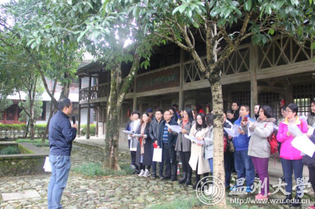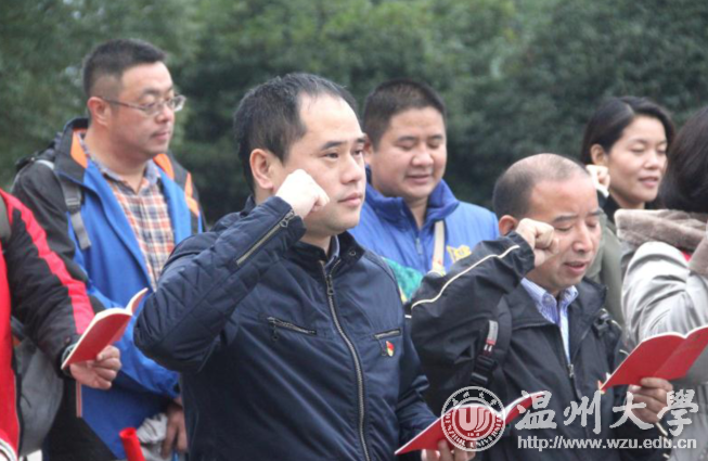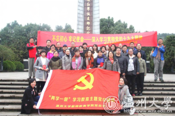 11月25日,51吃瓜 教师教育学院党总支来到著有“浙江延安”之称的平阳革命根据地,开展了“不忘初心,牢记使命”为主题的党日活动暨教职工革命传统教育活动。 当天,教师教育学院的党员教师参观了温州浙南(平阳)革命根据地旧址群,一同深入“浙江延安”,唤醒红色回忆。登上三十八级象征着出征日期的台阶,踩过乱石铺就的代表着征途艰险小路,站在北上抗日出征门前,仿佛还能想起当年老区乡民门夹道欢送依依不舍的情景和北上出征敌寇,捍卫我中华国威的铮铮誓言。远征北上的战场硝烟,已经在历史的浪潮中湮没,唯那栩栩如生的白石板墙抗战浮雕再现了曾经的峥嵘岁月。接着,学院党总支书记杨立淮带领教师党员重温入党誓词、向革命先烈鞠躬默哀,唤起大家对那段红色岁月的记忆,并在党旗下表示要为党的教育事业奋斗终生的决心。