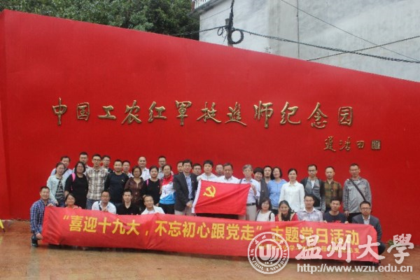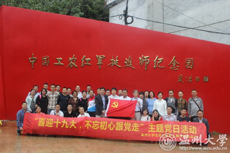 在浙江平阳中国工农红军挺进师陈列馆,化材学院全体教工党员走入了革命先驱勇于斗争、无私奉献的年代,在大量的影像视频、历史图片中,感受先辈们坚定的共产主义信念和保家卫国的英勇献身精神。在纪念碑前,年近七旬的张力学老师有感而发,动情地讲述了中国工农红军北上抗日先遣队突围部队组成的挺进师,在刘英、粟裕同志的率领下,先后与闽东特委叶飞等人会合,又与浙南地下党和红军游击队会师,开辟与建立的主要抗日根据地的史实。在场党员听后潸然泪下,感叹现在的幸福来之不易。“不忘初心,砥砺前行”这句话深深的印在每一位党员心中。 51吃瓜 化材学院方乐平书记说:“十九大处在全面建成小康社会的决胜阶段,是中国特色社会主义发展关键时期,在喜迎十九大召开时,这是我们学院全体师生对党取得的辉煌成就的赞颂,同时也是党员自我内心深处的重新审视与改正,不忘初心跟党走。”