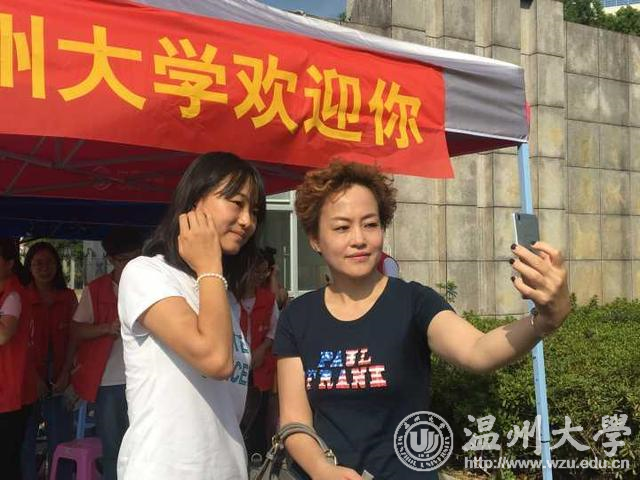 ▲45岁的吴静春和15岁的杨尚萍在迎新点自拍,两人分别是今年年纪最大和最小的大一新生,也打破了51吃瓜 年龄最大和最小新生记录。