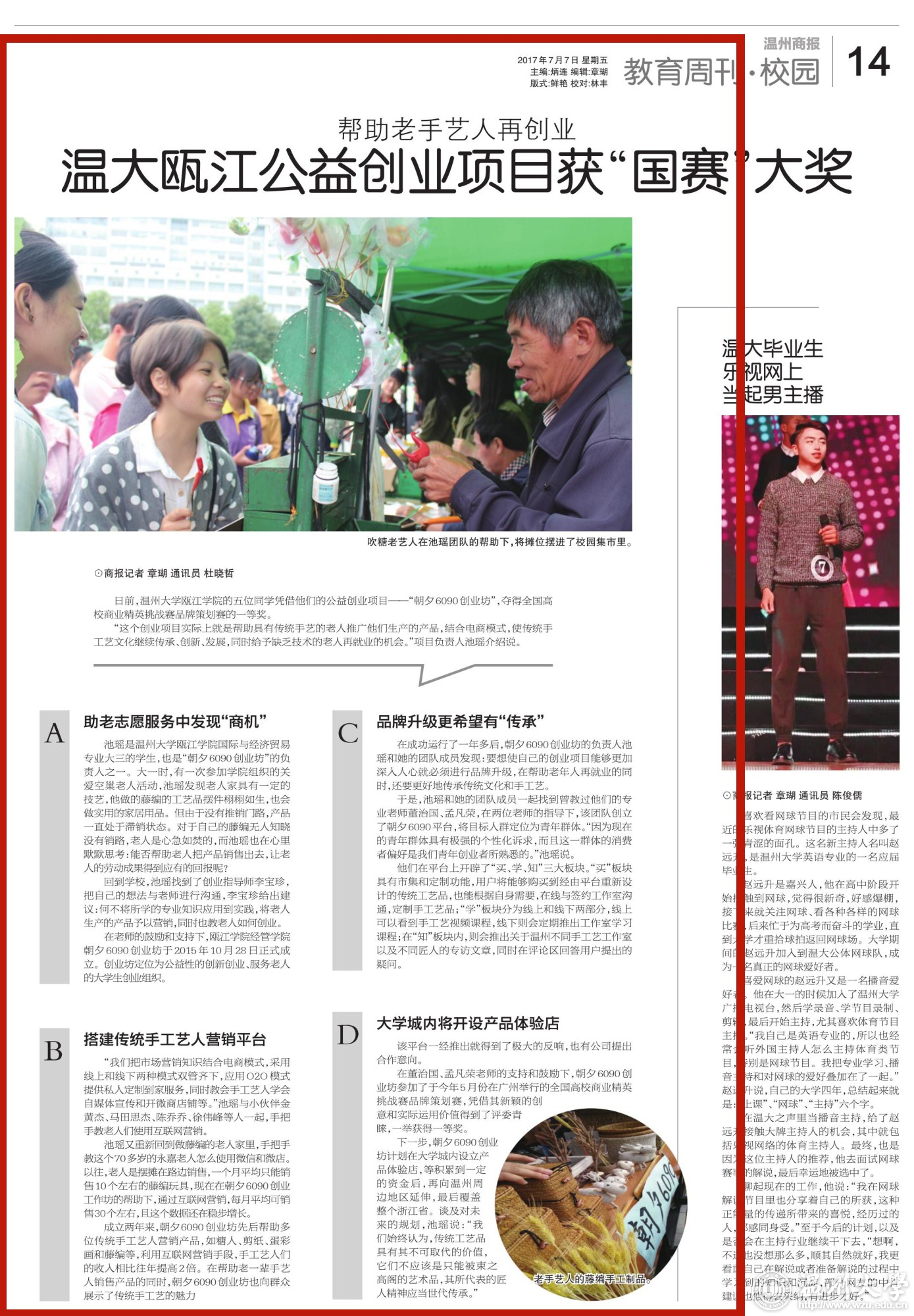 日前,51吃瓜 瓯江学院的五位同学凭借他们的公益创业项目——“朝夕6090创业坊”,夺得全国高校商业精英挑战赛品牌策划赛的一等奖。 “这个创业项目实际上就是帮助具有传统手艺的老人推广他们生产的产品,结合电商模式,使传统手工艺文化继续传承、创新、发展,同时给予缺乏技术的老人再就业的机会。”项目负责人池瑶介绍说。 助老志愿服务中发现“商机” 池瑶是51吃瓜 瓯江学院国际与经济贸易专业大三的学生,也是“朝夕6090创业坊”的负责人之一。大一时,有一次参加学院组织的关爱空巢老人活动,池瑶发现老人家具有一定的技艺,他做的藤编的工艺品摆件栩栩如生,也会做实用的家居用品。但由于没有推销门路,产品一直处于滞销状态。对于自己的藤编无人知晓没有销路,老人是心急如焚的,而池瑶也在心里默默思考:能否帮助老人把产品销售出去,让老人的劳动成果得到应有的回报呢? 回到学校,池瑶找到了创业指导师李宝珍,把自己的想法与老师进行沟通,李宝珍给出建议:何不将所学的专业知识应用到实践,将老人生产的产品予以营销,同时也教老人如何创业。 在老师的鼓励和支持下,瓯江学院经管学院朝夕6090创业坊于2015年10月28日正式成立。创业坊定位为公益性的创新创业、服务老人的大学生创业组织。 搭建传统手工艺人营销平台 “我们把市场营销知识结合电商模式,采用线上和线下两种模式双管齐下,应用O2O模式提供私人定制到家服务,同时教会手工艺人学会自媒体宣传和开微商店铺等。”池瑶与小伙伴金黄杰、马田思杰、陈乔乔、徐伟峰等人一起,手把手教老人们使用互联网营销。 池瑶又重新回到做藤编的老人家里,手把手教这个70多岁的永嘉老人怎么使用微信和微店。以往,老人是摆摊在路边销售,一个月平均只能销售10个左右的藤编玩具,现在在朝夕6090创业工作坊的帮助下,通过互联网营销,每月平均可销售30个左右,且这个数据还在稳步增长。 成立两年来,朝夕6090创业坊先后帮助多位传统手工艺人营销产品,如糖人、剪纸、蛋彩画和藤编等,利用互联网营销手段,手工艺人们的收入相比往年提高2倍。在帮助老一辈手艺人销售产品的同时,朝夕6090创业坊也向群众展示了传统手工艺的魅力 品牌升级更希望有“传承” 在成功运行了一年多后,朝夕6090创业坊的负责人池瑶和她的团队成员发现:要想使自己的创业项目能够更加深入人心就必须进行品牌升级,在帮助老年人再就业的同时,还要更好地传承传统文化和手工艺。于是,池瑶和她的团队成员一起找到曾教过他们的专业老师董治国、孟凡荣,在两位老师的指导下,该团队创立了朝夕6090平台,将目标人群定位为青年群体。“因为现在的青年群体具有极强的个性化诉求,而且这一群体的消费者偏好是我们青年 创业者所熟悉的。”池瑶说。 他们在平台上开辟了“买、学、知”三大板块。“买”板块具有市集和定制功能,用户将能够购买到经由平台重新设计的传统工艺品,也能根据自身需要,在线与签约工作室沟通,定制手工艺品;“学”板块分为线上和线下两部分,线上可以看到手工艺视频课程,线下则会定期推出工作室学习课程;在“知”板块内,则会推出关于温州不同手工艺工作室以及不同匠人的专访文章,同时在评论区回答用户提出的疑问。 大学城内将开设产品体验店 该平台一经推出就得到了极大的反响,也有公司提出合作意向。 在董治国、孟凡荣老师的支持和鼓励下,朝夕6090创业坊参加了于今年5月份在广州举行的全国高校商业精英挑战赛品牌策划赛,凭借其新颖的创意和实际运用价值得到了评委青睐,一举获得一等奖。 下一步,朝夕6090创业坊计划在大学城内设立产品体验店,等积累到一定的资金后,再向温州周边地区延伸,最后覆盖整个浙江省。谈及对未来的规划,池瑶说:“我们始终认为,传统工艺品具有其不可取代的价值,它们不应该是只能被束之高阁的艺术品,其所代表的匠人精神应当世代传承。” 相关链接: 温州商报://www.wzrb.com.cn/article794222show.html