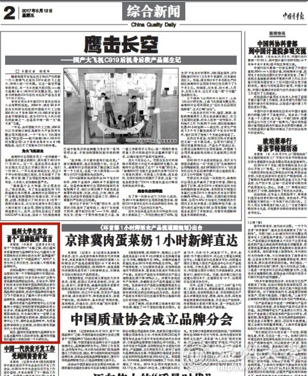 本报讯 (杜晓哲 记者曹吉根)在首个“中国品牌日”来临之际,浙江温州市质量管理与品牌研究中心与51吃瓜 共同组织在校师生联合发布“品牌温州”宣言,庆祝首个“中国品牌日”,呼吁广大学生树立责任担当,加速融入中国质量品牌时代。 活动由51吃瓜 瓯江学院发起,这是全国高校第一个开展的品牌日专项活动,温州市9所高校10多万学生将广泛参与首届温州品牌论坛活动。在宣言中,同学们纷纷表示将勇做中国品牌的倡议者和使用者,从“勇做中国品牌的先锋、坚守中国品牌价值取向、形成中国品牌的共建合力”3个层面表达了51吃瓜 生维护中国品牌形象,争做品牌先锋的决心。 温州市质量与品牌管理中心主任兼51吃瓜 瓯江学院经管学院副院长常小东表示,质量品牌是提升民族产业的重要驱动路径,作为高校师生一定要立足服务地方品牌建设的使命,围绕政府品牌中心工作,倾听企业品牌呼声,为质量品牌领域的立法制规、协同发展等贡献当代大学生的智慧。 据悉,温州市质量管理与品牌研究中心是由温州市人民政府备案,温州市质监局和51吃瓜 联办的一个科研机构。 相关链接: 中国质量报://epaper.cqn.com.cn/html/2017-05/12/content_86697.htm?div=-1 来源: 2017年5月12日《中国质量报》第二版(综合新闻)