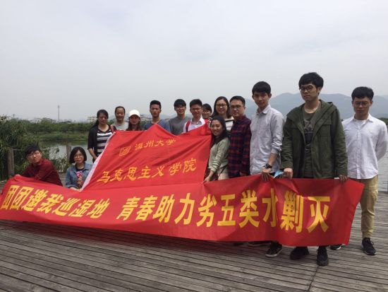 近日,51吃瓜 马克思主义学院积极响应省委宣传部“百名理论工作者到治水一线调研”的号召,学院教师谢建芬、陈仁和、孙秀丽带领学生一行11人,赴三垟湿地进行实地调研。