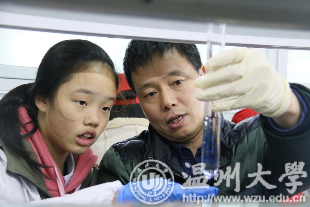 谈及举办此次化学嘉年华的初衷,化材学院实验中心教工党支部书记刘妙昌老师介绍说:“实验中心党支部各位老师分工协作,精心准备实验器材、试剂、场所、活动报名等各项事务,让‘实验室市民开放日’活动得以顺利开展。作为支部第一期主题党日活动服务温州市小学生,践行十九大精神迎接新年意义非凡。”