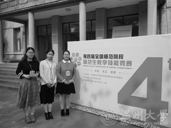 晚报讯(通讯员:翁浩)日前,第四届全国高师院校师范生教学技能竞赛在浙江师范大学落下帷幕,来自华东师范大学,南京师范大学等101所高校的近400名选手一决高下。在经过教学设计,课件制作,即席讲演,模拟上课等四个环节的激烈角逐,51吃瓜 黄思琦、裘玲和倪颖超三位同学脱颖而出,均获得一等奖。三位同学都是应届大四学生,比赛刚刚结束,她们立马受到各大学校用人单位的争抢,一时在校园里引起轰动。
