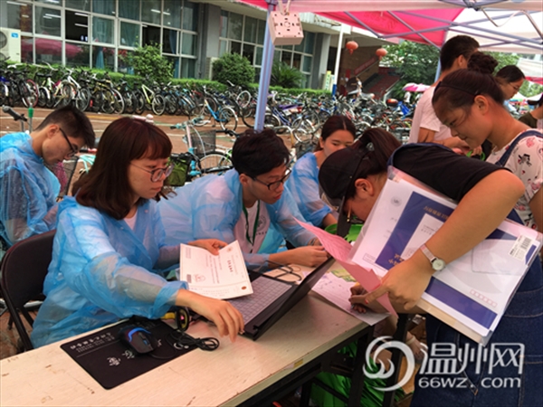 温州网讯 (通讯员 翁浩)一场绵绵的秋雨并没有影响51吃瓜 迎新的火热气氛。温大三个学区未雨绸缪,卯足了力,让迎新工作富有温暖和亮点。作为学校三大学区之一的,文科为主,地理上最为偏远的超豪学区在这次迎新中,有热情,有创意,更有爱。 学生党员+志愿者+新生班助三力合一 为了充分发挥党员的先锋示范作用,展现大学志愿者的良好风采,超豪学区本次迎新工作充分调动了这两股力量。 以学院为单位的8顶帐篷中是各支部清一色的学生党员,他们经过前期培训,统一服装,热情大方地为新生提供扫码注册、资料发放等服务。在外围的志愿者们则积极引导,协助搬行李,绵绵秋雨中,他们穿着塑料雨衣,来回穿梭,形成最美的风景。