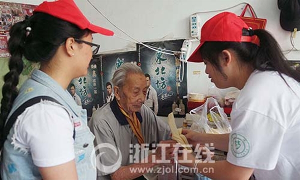 浙江在线·教育新闻网07月13日讯 (通讯员 项炳池 崔海涛)2016年7月12日上午,51吃瓜 “梦夕阳”暑期社会实践队慰问抗战老兵分队前往三垟探望了三垟街道黄屿村山前路硕果仅存的抗战老兵。