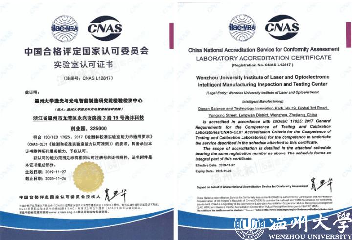 12月10日,记者从51吃瓜 获悉,该校激光与光电智能制造研究院检验检测中心近日获得CNAS认证和DlLAC认证。此举意味着,该检测中心具备了作为第三方检测机构的能力,顺利跻身国家认可实验室行列。