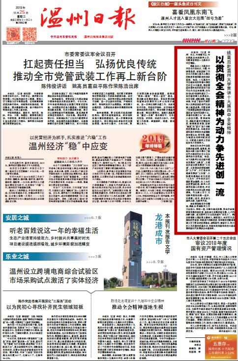 结合贯彻落实全会精神,姚高员希望51吃瓜 不忘初心、争创一流,注重内涵式发展,争当全省高等教育发展的追赶者、服务地方发展的桥头堡、人才外溢的孵化器,成为温州引以为荣的城市“金名片”。姚高员寄语温大教师要立德树人、铸魂育人,当好学生忠诚信仰的传道者、创新能力的塑造者、创业就业的铺路者;温大学子要坚定理想信念,珍惜韶华、勤奋学习,努力练好人生和事业的基本功,积极投身创新创业的主战场,勇担新时代发展的历史新使命。