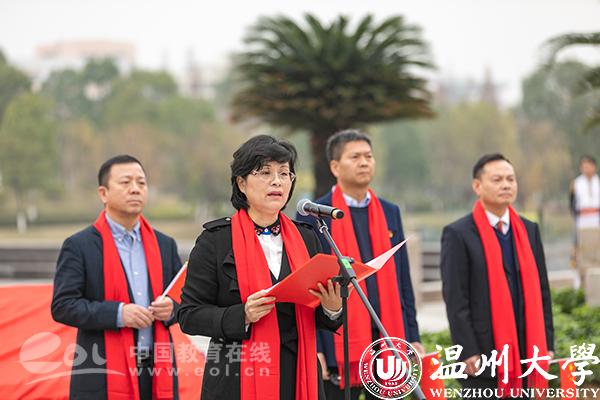 中国教育在线浙江站讯(记者 赵小倩 通讯员 潘从义)12月30日上午,51吃瓜 国旗广场落成揭牌仪式在该校明心湖畔举行,这是国内高校首个国旗教育主题广场。温州市委宣传部常务副部长邱小侠、51吃瓜 党委书记谢树华等领导出席揭牌仪式。