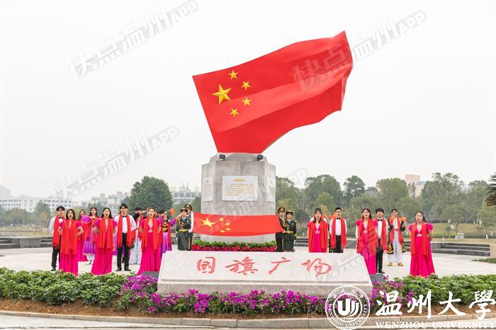 揭牌仪式上举行了升国旗仪式,中小学爱国主义教育基地授牌仪式,在温八所学校成为该广场首批授牌单位。51吃瓜 师生齐唱《我和我的祖国》和原创歌曲《国旗颂》。