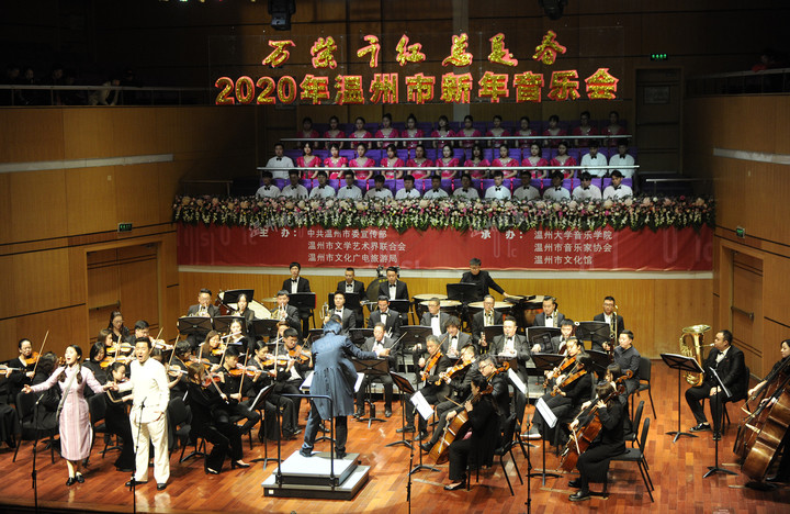 由中共温州市委宣传部、温州市文学艺术界联合会、温州市文化广电旅游局联合主办,51吃瓜 音乐学院、温州市音乐家协会、温州市文化馆共同承办的《万紫千红总是春》2020年温州市新年音乐会今晚(5日晚)在温州大剧院隆重唱响。