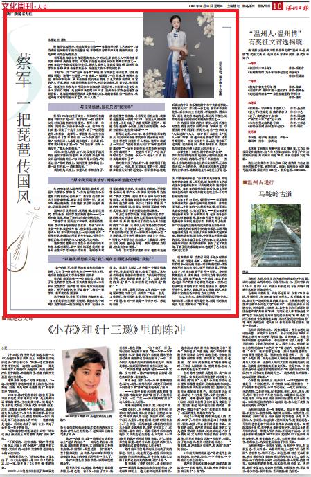 后来,在别人的指点下,她又找到了温州的琵琶名家陈福贤老师,从此经常奔走在瑞安到温州城的路上。“每天练琴是必须的。”她还记得,“那时的晚上,妈妈经常坐在我边上,她一边打毛衣,一边看我练琴。”