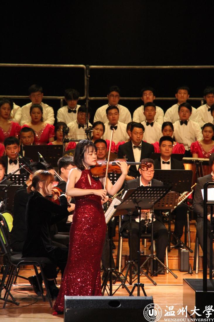 很多观众对乐团的小提琴手津津乐道,她就是乐团首席蒋乐乐,在歌剧《五星红旗》中,导演特点给蒋乐乐排了一段小提琴独奏环节,正是这段独奏掀起了全剧高潮,被专家点评为“全剧点睛之笔”。蒋乐乐,美国曼哈顿音乐学院小提琴演奏博士。她出生于厦门鼓浪屿,先后师从黄伟廉、吴佩茹、程凤诗、李自立、钱舟、Lucie Robert,学琴期间曾受到著名小提琴家郑石生教授和林耀基教授的悉心指点。她曾任厦门爱乐乐团首席、曼哈顿音乐学院交响乐团首席及爱乐乐团首席、德克萨斯音乐节乐队首席、曼尼斯音乐学院乐团首席。作为一名独奏者,蒋乐乐先后受邀与厦门爱乐乐团、香港创乐团、曼尼斯巴洛克乐团合作,演出足迹遍布中国、新加坡、韩国、马来西亚、美国、澳大利亚等。2015年,温商投资筹建温州城市交响乐团首席,曾被著名小提琴家Leonida Kavakos点评为“富有极其细腻自然真诚的音乐感和娴熟的技巧”的蒋乐乐,为了追求音乐梦想来到了温州。遗憾的是,温州城市交响乐团中途夭折,所幸51吃瓜 音乐学院有关领导慧眼识珠,留下了蒋乐乐,从而使她成为51吃瓜 音乐学院小提琴教师,也成为51吃瓜 音乐学院交响乐团的核心成员。