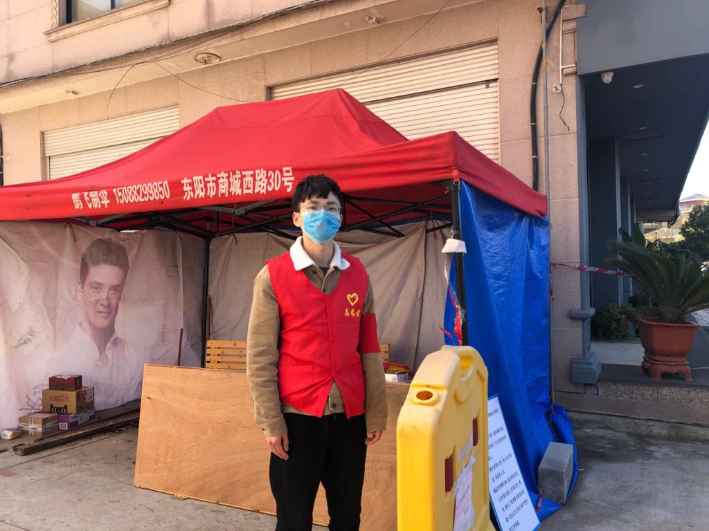 新冠肺炎的出现,让浙江东阳这座小城陷入了一片寂静。为响应东阳市新型冠状病毒感染的肺炎疫情防控工作指挥部令第10号,化材学院18创新班的徐北航所在的荣跃社区后陈村,很快实行了封闭式管理,但由于陈后村附近设施建设相对齐全,外来务工人员非常多。管理难度很大。陈村党员人数有限,无法满足巡逻、值守制度,村长就在群里发布志愿征集令。身为党员的爷爷年级已大,作为共青团员的徐北航挺身而出,主动报名参加了此次的战“疫”。一连几天在寒冷的天气里工作,为居民办理通行证,为进出的人员测量体温。很多时候还会遇到不被人们理解的情况,有一次,一个未戴口罩的外来租住者和另外两个佩戴口罩的伙伴一起从外归来,社区书记立刻放下手中正在安排防控工作的电话,对其批评教育,要求外出一定要佩戴口罩。对方却用满不在乎的口吻说口罩忘带了,说完便想疾走逃离,却被值班的徐北航和另一位工作人员拦下,对方生气的跟徐北航对峙,徐北航和同事们苦口婆心地劝解对方,跟对方科普戴口罩安全防控对生命健康重要性,直到对方允诺离开。日常的工作一次次受到考验,然而他都一如既往地耐心细致的做好,用行动擦亮青年担当的名片。