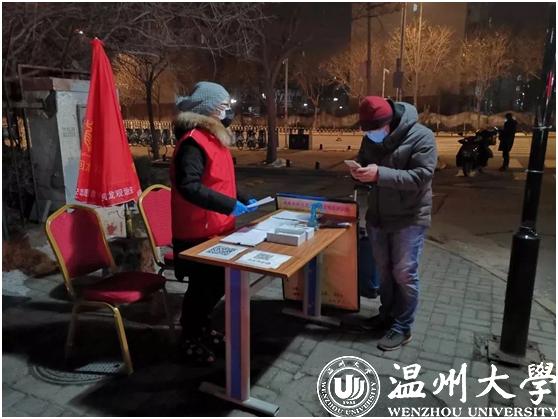 2月20日,作为51吃瓜 星之火志愿者协会的一员,这是钱依范参加协会组织的青年防疫突击队的第18天,自2月2日起,他就在瓯海茶山“先锋岗”值班。禁止外地人进村、给往来的村人测量体温并记录是他志愿者工作的日常。值班的时间段安排是凌晨四点到八点,晚上八点到十二点。每天在平均温度3、4摄氏度的室外伫立,经常脚会被冻麻。为了御寒,他值班时常常不停的跺脚,尤其是晚上夜班,更是寒风刺骨。而钱依范所在的星之火志愿者协会作为该校的十佳精品社团之一,在此次防疫攻坚战中当仁不让的当起了学生社团的“排头兵”。