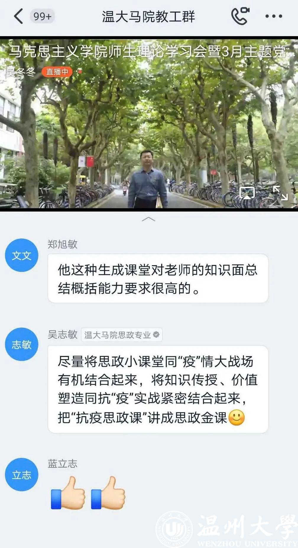 为贯彻落实习近平总书记关于新冠肺炎疫情防控工作的重要讲话和指示精神,全力支持配合打赢疫情防控人民战、总体战、阻击战,深化新时代高校思政课改革创新,按照教育部党组“停课不停教、停课不停学”的工作要求,51吃瓜 马克思主义学院充分利用线上教学平台和优质在线课程资源,全面开启战“疫”在线“主播”思政全覆盖、战“疫”专题思政第一课全新讲、战“疫”在线思政课程全共享的“三全”线上教学活动。