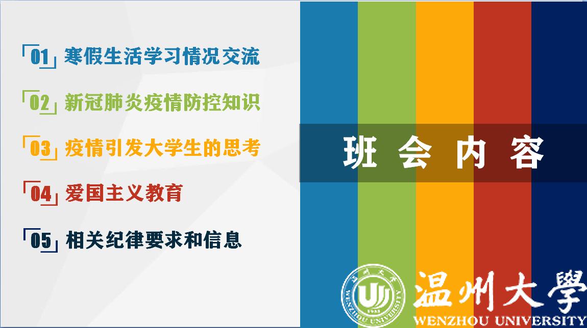 2020年春季学期的开学季因突如其来的新冠疫情而变得那么严肃而感伤,振奋而感动。为打赢这场疫情防控阻击战,51吃瓜 全体师生上下一心,积极应对各方面挑战,不仅在教学方面实现了“停课不停学”,每学期的“开学第一课”主题班会的传统也没有停歇,班主任和学生们以一种格外温暖而创新的方式在空中相遇。自2月底至今,全校363个班主任在线上开学季期间,以“同心战“疫”,温大学子在行动”为主题开展线上“云班会”。