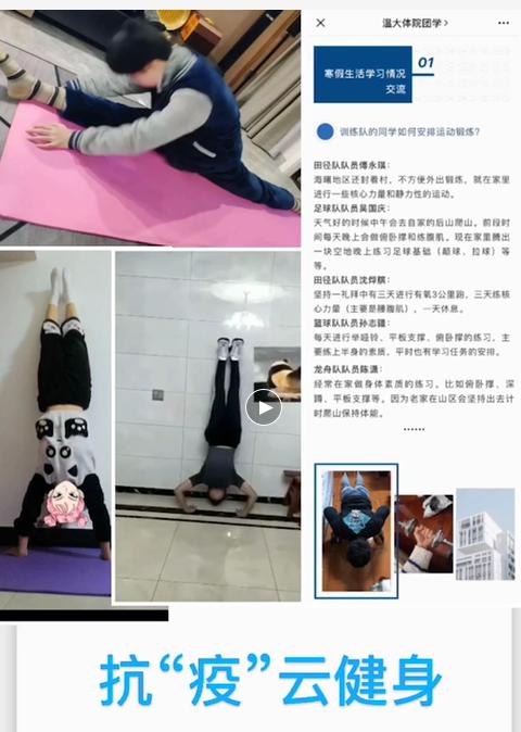 为了积极引导学生安稳、充实的度过假期每一天,各班级在“云班会”上分享学生们积极健康的假期生活。国际教育学院的同学在寒假期间,在厨房苦心钻研厨艺。居家隔离,让不少同学爱上了做菜;马克思主义学院则牢记“身体是革命的本钱”,在班会上分享了不少同学各自的居家健身方式,“居家健身”成为抗疫的一个新的方法。