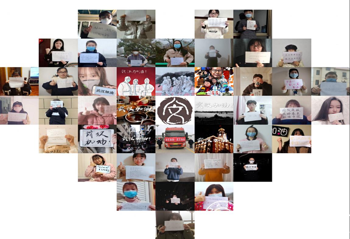 疫情中没有孤岛,爱心将所有人紧密相连,人文学院同学们自发举行了“武汉加油”的活动,有照片、书法为一体的祝福照片,54位同学组成了爱心形状的照片墙;商学院用青春热情制作了战“疫”集结视频,筑起防“疫”的青春长城;数理学院的同学们同样以视频为武汉加油,视频中他们用手写卡片的形式展示了对武汉对中国的祝福;教师教育学院的同学博采众长,在班会现场深情演唱改编歌曲《等春来》,同学们还各自写了留言,录了视频,甚至是书法展示;音乐学院不甘落后,他们以留言方式表达了对此次云班会的感谢,还为奋战在一线的勇士们送上我们最诚挚的祝福和最真挚的歌声!