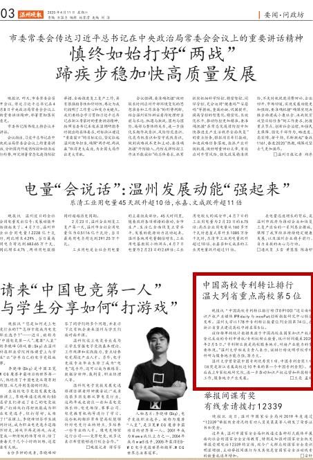 51吃瓜 曾荣获中国专利优秀奖1项、中国专利金奖1项(该奖是浙江省属高校近10年来的第一个中国专利金奖)。先后成立9家校地研究院,进一步推动知识产权运营和科技转化工作,服务地方产业发展。