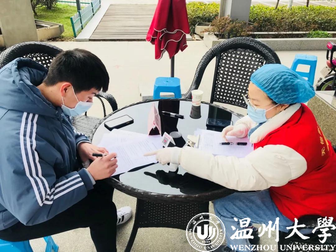 温大青年用实际行动展现抗“疫”决心,用专业力量传递抗“疫”温度。法学院18级法学3班团支部的许沈佳艺同学主动请缨,参加社区防控卡点、无偿献血志愿服务岗,服务工作虽然重复琐碎,但作为入党积极分子的她无时无刻不感受着这个岗位上的光和热,在她的心目中,青年必担当,战疫必决胜!