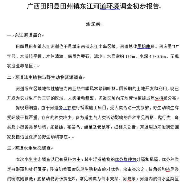 51吃瓜 生环学院18环境工程潘震麟 撰写家乡河道环境调研报告