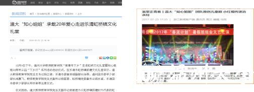 “知心姐姐”暑期实践队每年暑期都会深入温州瑞安、乐清、建强等地开展为期21天的“红七月•服务月”新青年下乡活动。团队精心编排设计八大类趣味课程,涵盖品德教育、艺术熏陶等内容,以品德教育贯穿兴趣培养,为300余位留守儿童打造寓教于乐、寓学于乐的公益夏令营活动,助力塑造健康向上的人生观和价值观,形成知心姐姐课程精品集、建立特殊儿童心理档案、打造乡村微舞台、线上线下同步公益绘本等成果。同时通过多方宣传力量凝聚社会的关注与帮助,受到中国青年网、浙江新闻网、温州日报等20余篇媒体报道。