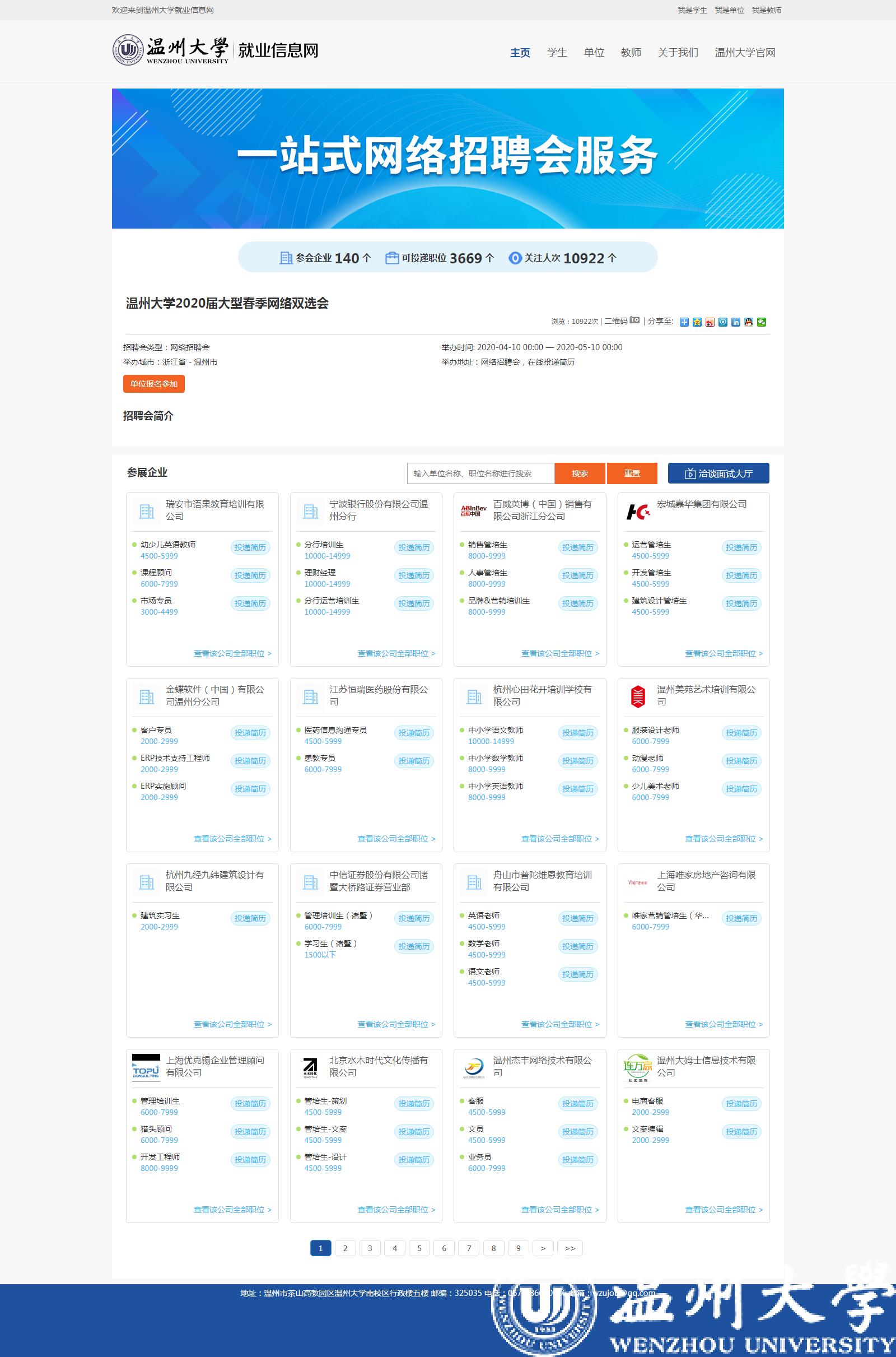 同时学校还加强与政府、企业、校友以及各知名网络招聘平台合作,提供就业信息发布、在线招聘会、空中宣讲会等服务,为学校毕业生拓展就业渠道,鼓励毕业生和用人单位通过网络实现岗位发布、简历投递、笔试面试等就业供需对接。网络招聘从“天天有市场,月月有专场”到365天24小时全天候开放。