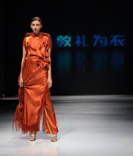 “敦礼为衣”第三届柯桥中国国际礼服设计大赛——洪心怡礼服作品(左)《霞色》荣获银奖