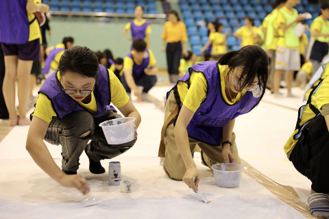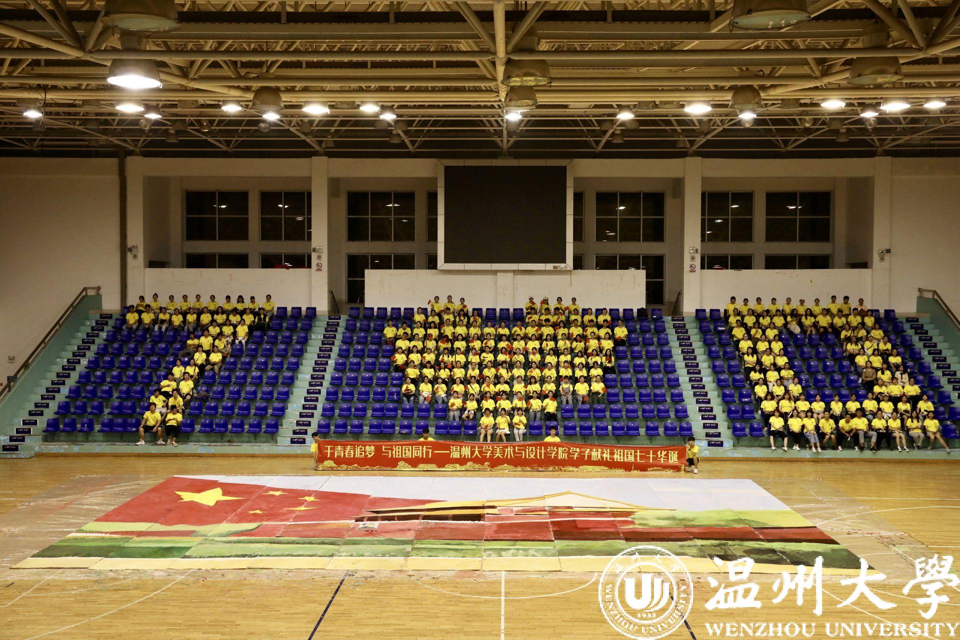 随后,266名新生齐聚温大篮球馆,在51吃瓜 这个崭新的起跑线上,他们用手中的颜料与画笔,用艺术专特长与热情,共同绘制10*16m国庆主题巨画《我爱祖国》,画出了浓墨重彩的一笔。最后,在266人、花费3小时共同完成的画作旁,全体新生摆出“70”字样,齐声喊出“祝伟大祖国繁荣昌盛”,献礼祖国70华诞,展现了温大青年学子的爱国情怀和使命担当。
