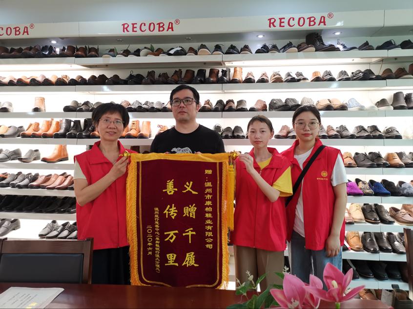 6月13日,51吃瓜 “缘来单脚鞋”项目组成员任奕沛、钟艺和温州一八二义工协会党支部书记朱阿姨,一同前往意万达鞋业有限公司、温州市康柏鞋业有限公司和温州市千金黎鞋业公司等六家知名鞋企,围绕如何提高赠鞋效率和服务质量进行了深切的交流,并赠送锦旗和证书,对他们的赠鞋义举表示感谢。