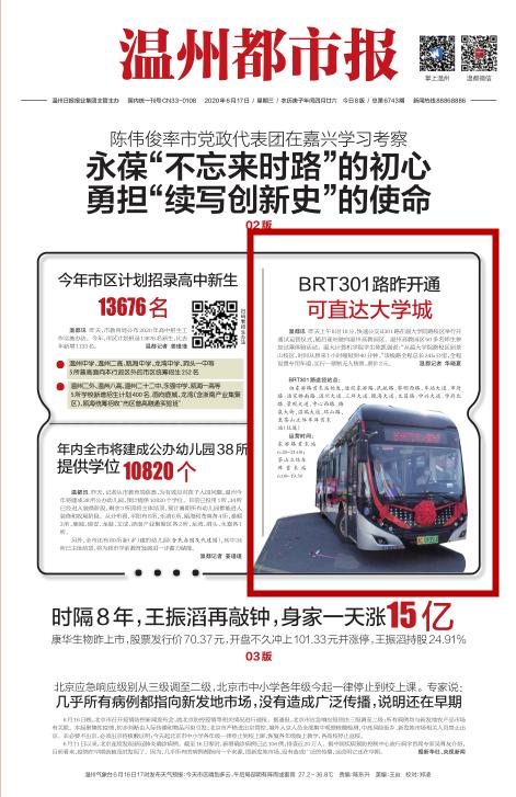昨天上午8时18分,快速公交B301路在温大学院路校区举行开通试运营仪式,随后逐站驶向温州高教园区。温州高教园区50多名师生参加试乘体验活动。温大计算机学院学生陈凯强说: “从温大学院路校区到茶山校区,时间从原来1小时缩短到40分钟。”该线路全程总长24.5公里,全程设置专用车道,实行一票制无人售票,票价2元。