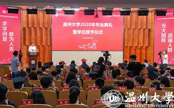 “东海水,雁荡山,我温大精神,浩浩宕宕……”师生们齐唱校歌,忆往昔朝气蓬勃,望明日繁花似锦。此次毕业典礼还同步进行了网络直播,有近8万人次在线观看参与了毕业典礼。