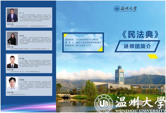 讲师团成员、国家社科基金重大项目首席专家、中国法学会民法学研究会理事、51吃瓜 法学院钟瑞栋教授受邀为温州市政府常务会议、市政协党组、市委办公室、应急管理局、财政局、烟草局、瓯海区委理论学习中心组等市内单位,并跨省为广东省珠海市市委组织部、政法委、司法局、教育局等省外单位作《民法典》专题辅导报告。讲师团成员、省级学术与技术带头人人选、51吃瓜 法学院李勇军副教授受邀为温州市经信局等单位作《民法典》专题辅导报告。