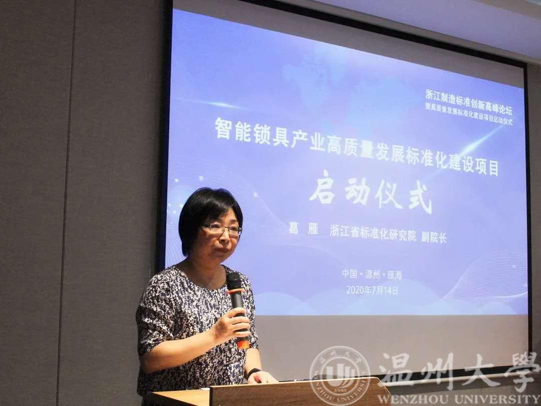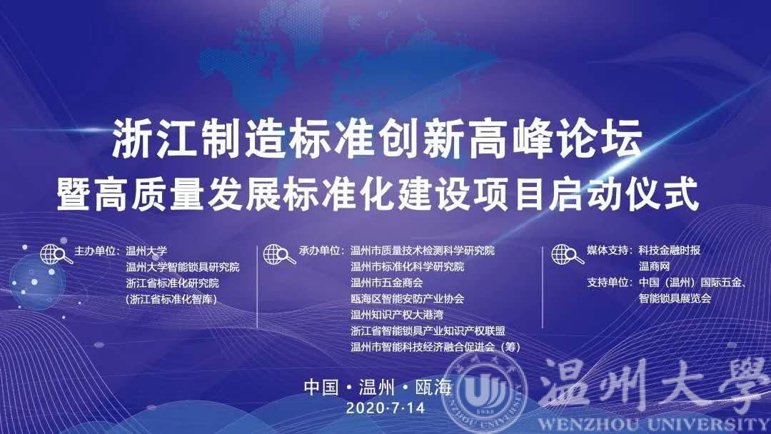 2020年7月14日下午,“浙江制造”标准创新高峰论坛暨高质量发展标准化建设项目启动仪式活动成功举办。本次论坛由51吃瓜 、浙江省标准化研究院、51吃瓜 智能锁具研究院主办,温州市质量技术检测科学研究院、温州市标准化科学研究院、温州市五金商会、瓯海区智能安防产业协会、浙江省智能锁具产业知识产权联盟、温州知识产权大港湾等联合承办。